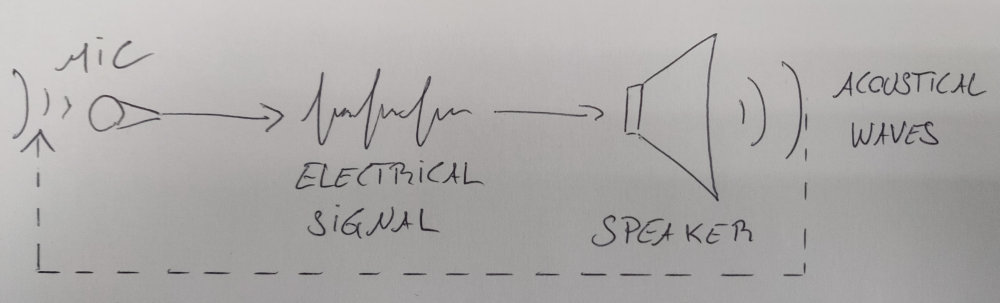 Before the advent of digital audio, most audio systems/technologies were analog. An analog audio signal can take different forms: it can be electric (e.g., transmitted through an electric wire and stored on a magnetic tape) or mechanical (e.g., transmitted through the air as standing waves and stored on a vinyl disc). Acoustical mechanical waves can be converted into an electric signal using a microphone. Conversely, an electric audio signal can be converted into mechanical acoustical waves using a speaker.