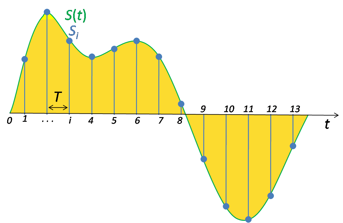 Carrying sampling in the field of audio is relatively simple: voltage measurements are carried out at regular intervals of time on an analog electrical signal. Each individual acquired value is called a "sample" and can be stored on a computer. Hence, while an analog electric audio signal is a variation of tension in time in an electric cable, a digital audio signal is just series of samples (values) in time as well.